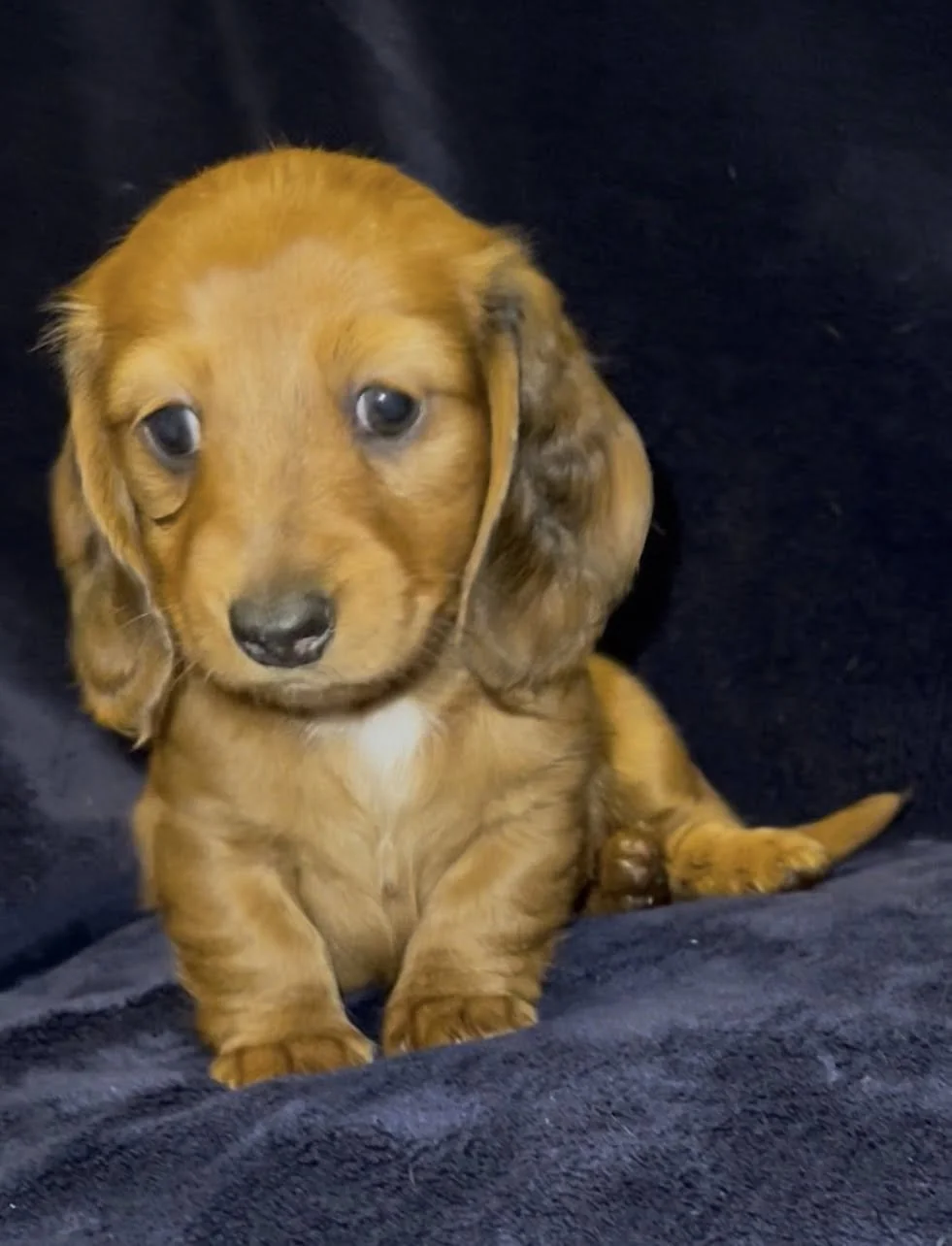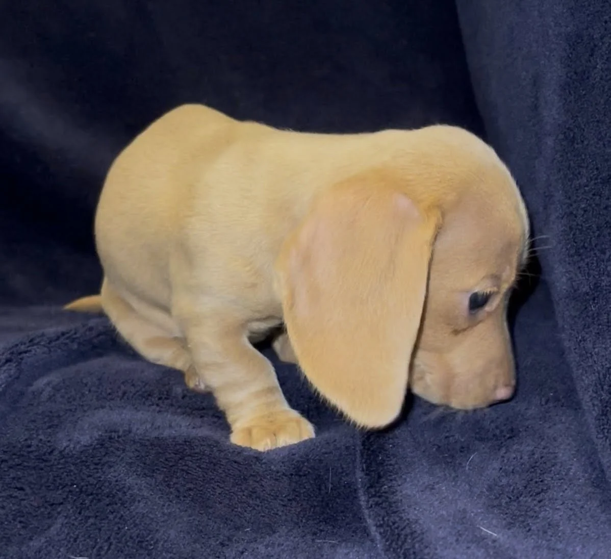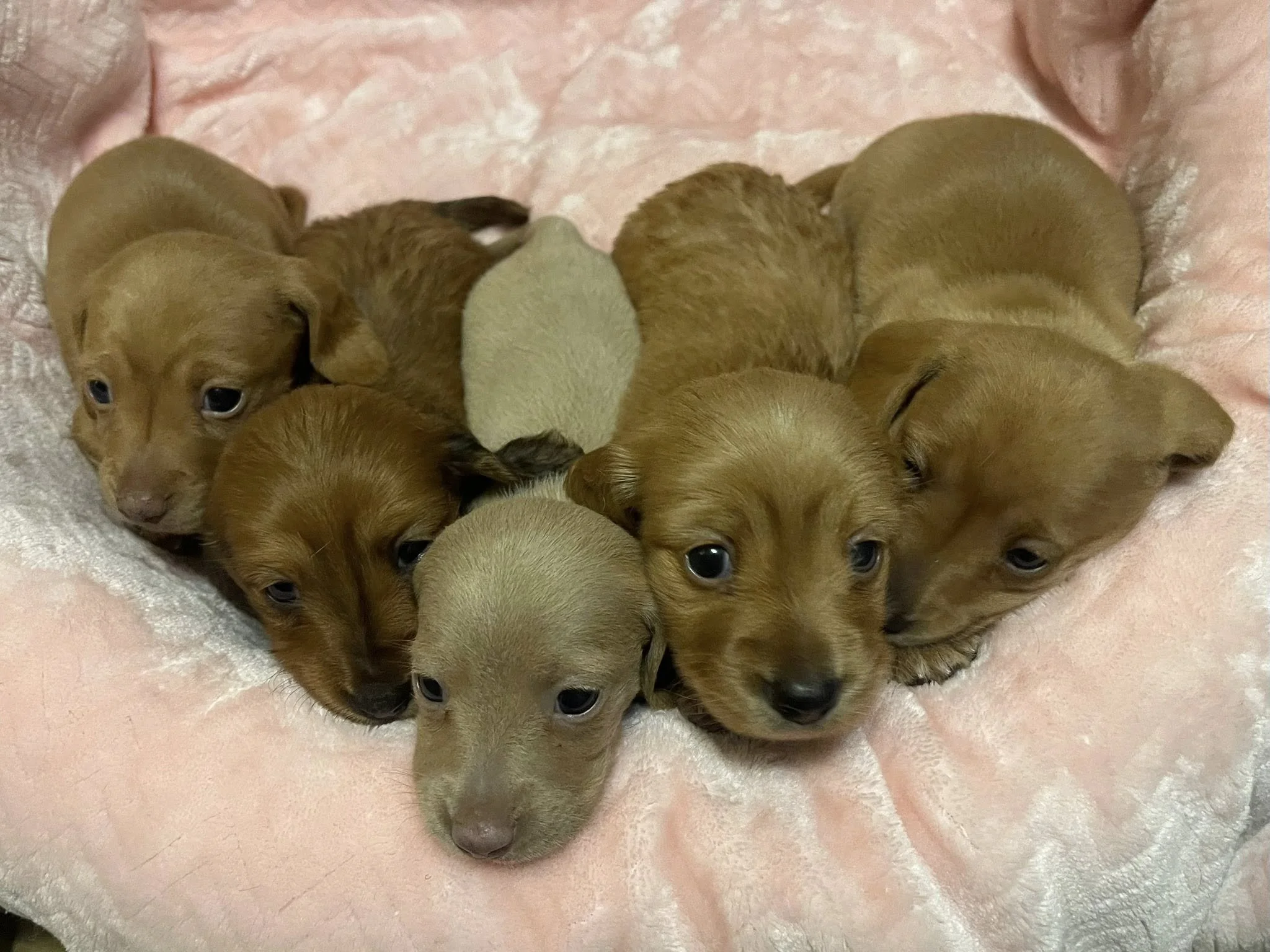 Rodeo & Choux pupsborn 1/25/26Miniature Dachshunds, AKC registered Short hair light red black nosed female. Long hair light red female. Short hair Isabella (gray) female. Long hair dark red female with small patch of dapple on back. Short hair light red liver nosed female.